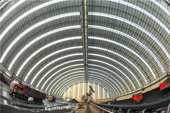 堆场料场封闭式主体结构为新型的钢喀什网架结构,维修结构为钢结构喀什不锈钢板和纤维增强塑料灯具,其外形以喀什网架式和平板为主,连接柱喀什施工自由,设置喷雾自动喷水系统,从而可以实现棚内所有物料的覆盖,减少物料在运输过程中的损耗,起到防尘的作用,减少工厂关闭后的二氧化硫排放量,50mg/m3颗粒排放量小于10mg/m3,非常适合低能耗。低闭库自动感应反应对库存轮胎进行清洁,确保轮胎不受道路污染;封闭的储存区可从源头控制粉尘污染,控制无序排放。